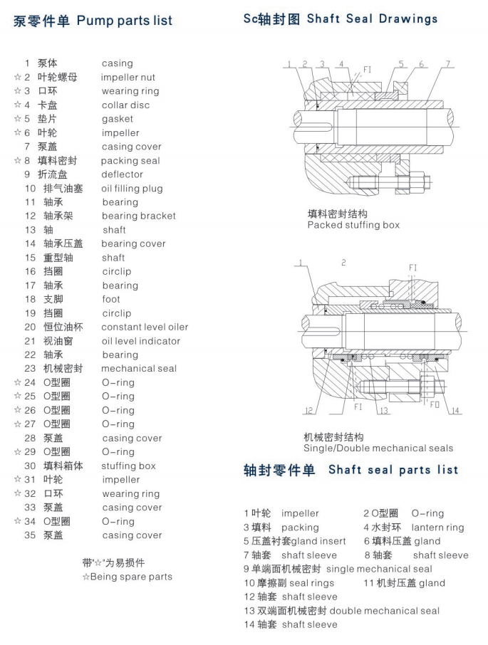 The designing of pump SC is according to ASMEB73.1,IS05199.
