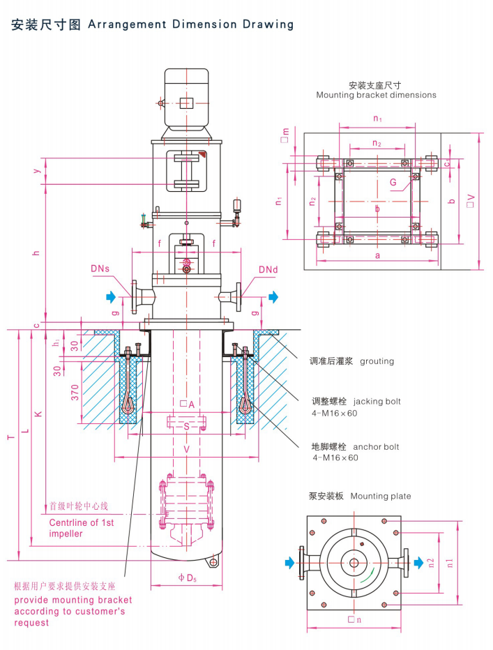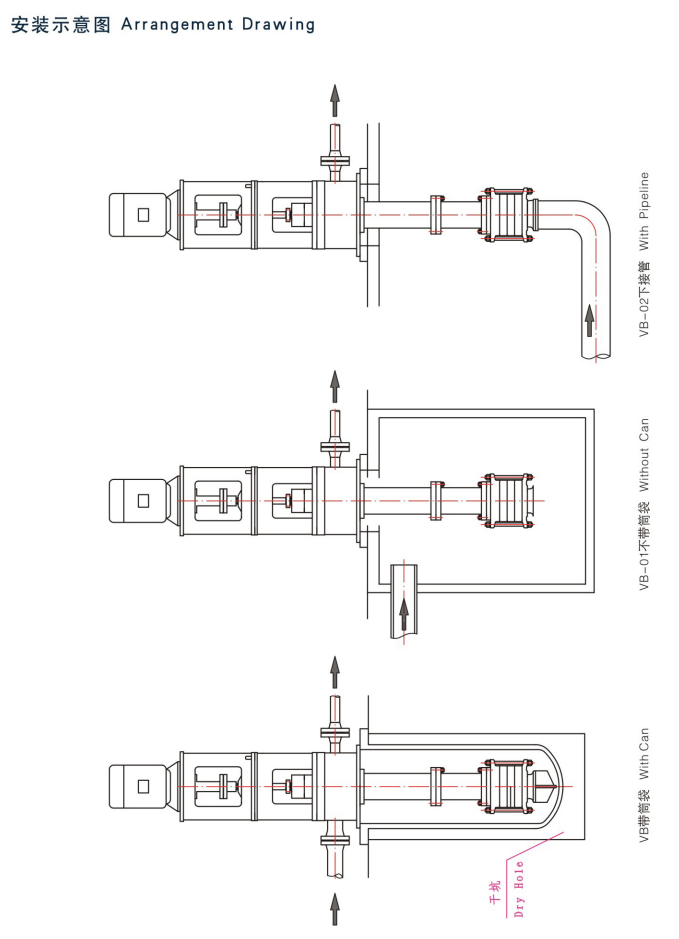 ■The pump with can should be arranged in the dryhole. The length of the pump or the can is accordingto the requirement of NPSH. Installed bracket used towill be provided if required.