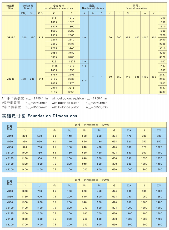 ■Flange pressure: suction branch is 4.0Mpa,discharge branch is 10.0Mpa (In addition to VB150,200).Customer request is optional.